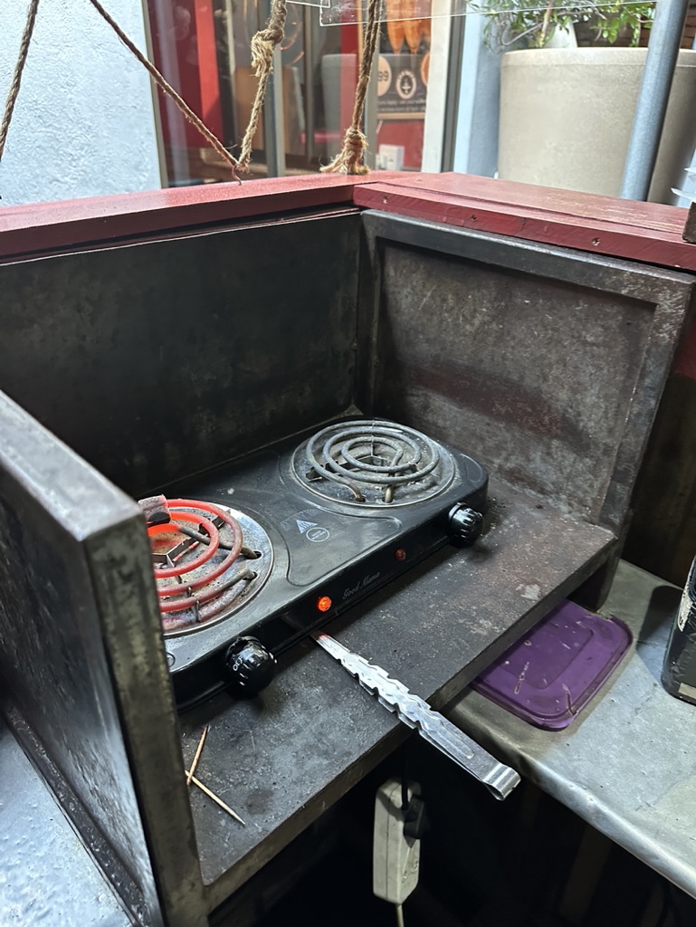 Our shisha preparation area has been located outside the building in an undercover all weather location. This ensures that shisha is totally seperate to food/ kitchen prep and allows for a dedicated space to prepare the best pipes around.