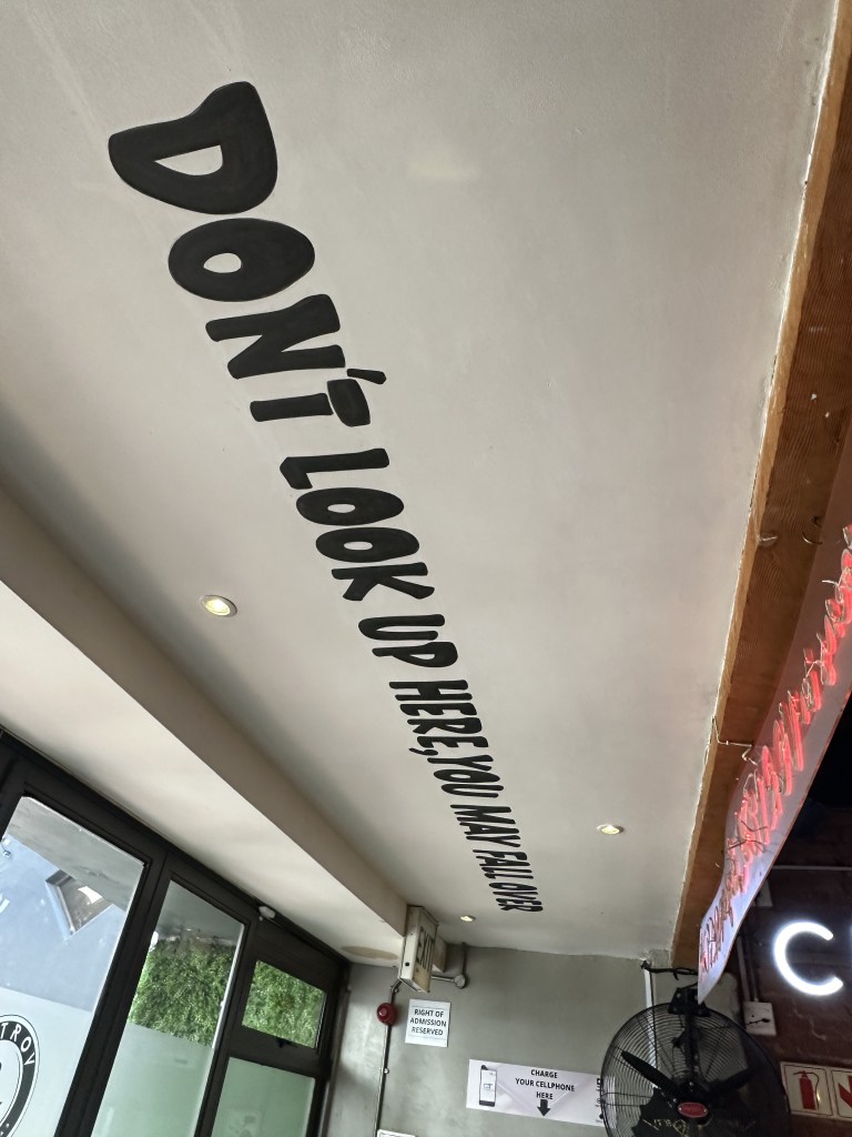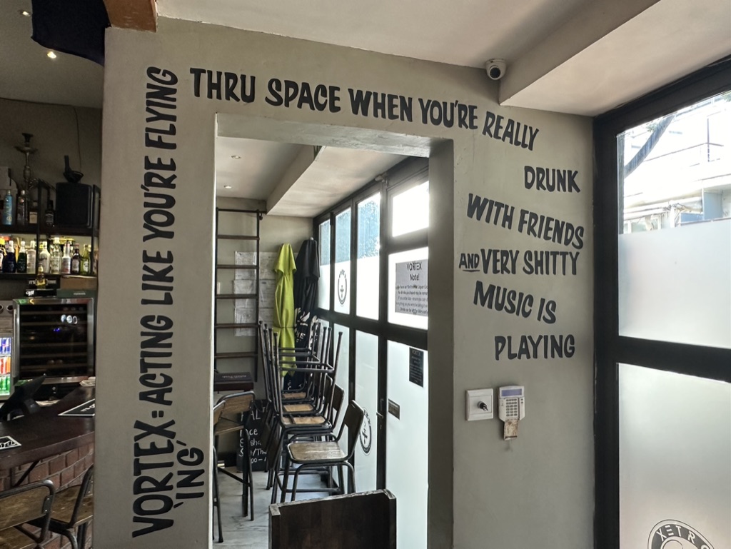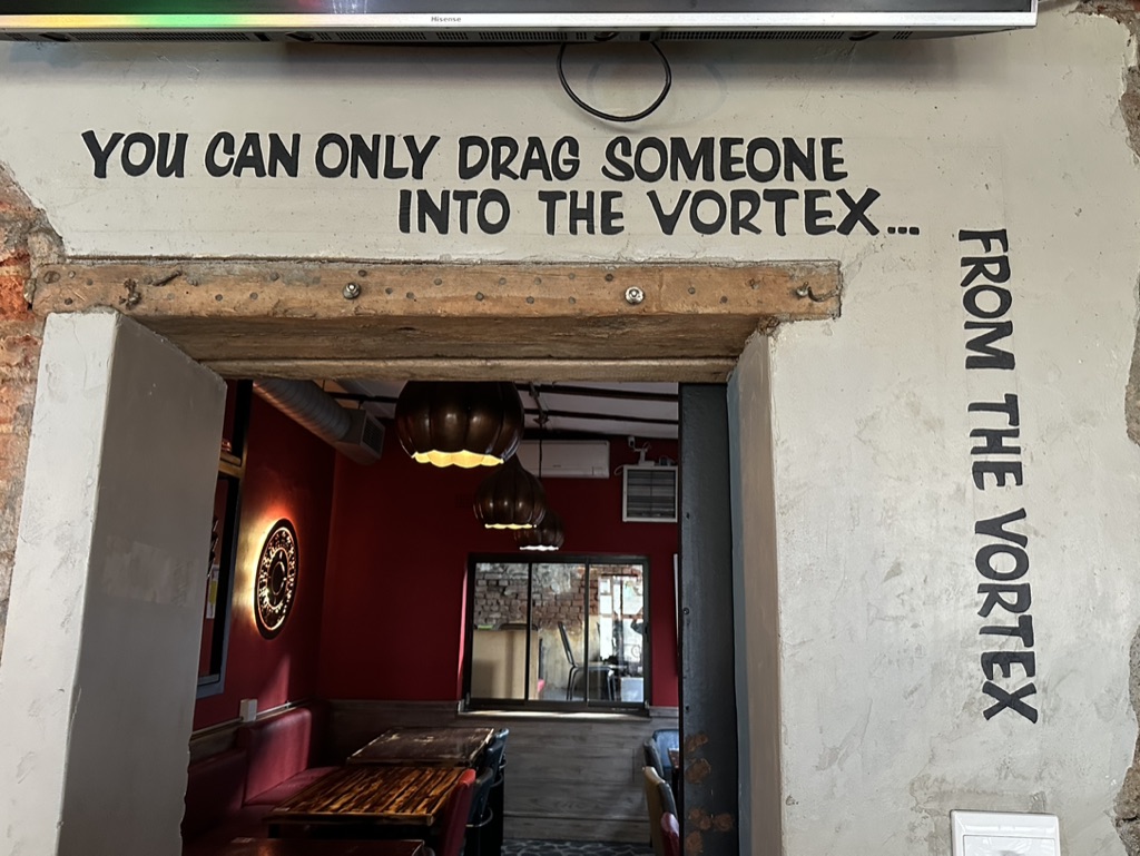 One of key brand elements are the neon sign range and options which exist within Vortex along with painted quotes, around various key locations, on walls, plus location identity signs on doorways etc.
