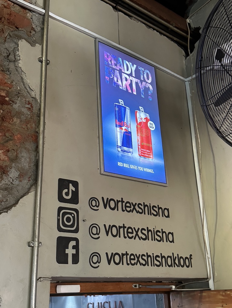 Painted signs of Social Media tags and our Round logo with EAT DRINK SHISHA are also critical elements, with the balance being optional based on design criteria, but if they can be accommodated without cramping wall space, they will be.
